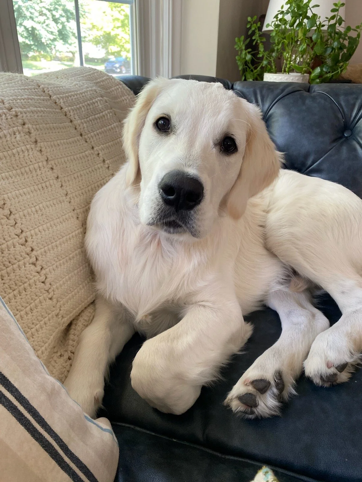 I hope you and your family are doing well! Ollie (formerly Bo) is such a wonderful pup. Heโs almost 8 months now, and knows about 15 commands/tricks (unless we are outside โ then heโs suddenly deaf and โcanโt hear meโ ๐). Heโs very laid back and chill, so I think we got pretty lucky with that! He loves ice cubes, baths, loooooves the snow, and loves blankets. We still have the one you sent home with him, though itโs a bit shredded now. Heโs such a beautiful pup and everyone always compliments how handsome he is. Heโs a big mommaโs boy, and is pretty much ALWAYS attached to me, but Iโm 100% fine with that. Love him to pieces! โค๏ธ๐ถ
