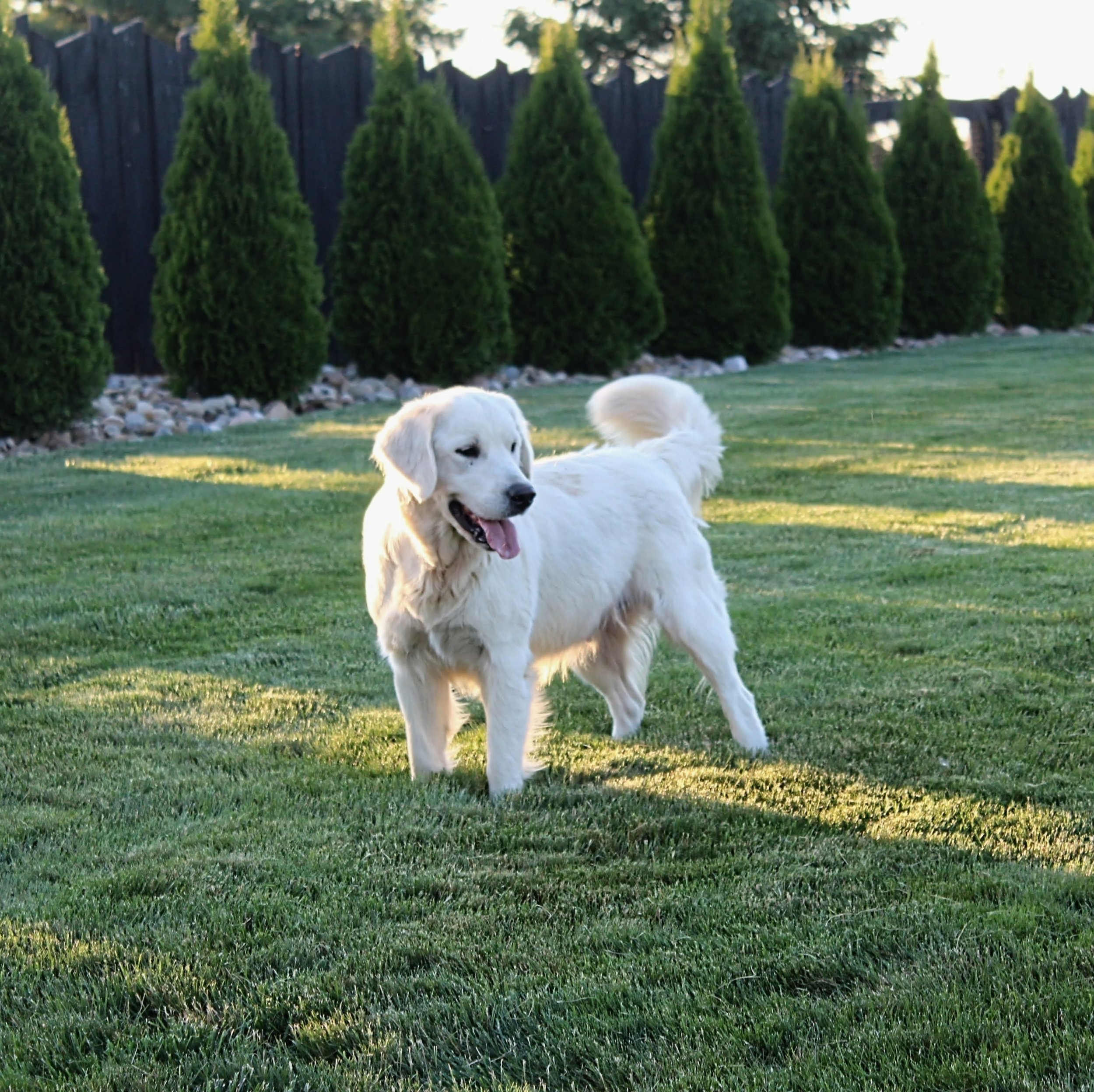 Introducing Sheba a lovely female we bought as a one year old she is a half sister to Willow and a full sister to Stella . She has a beautiful white haircoat, full of energy loves attention and her daily runs of our 5 acres!!!